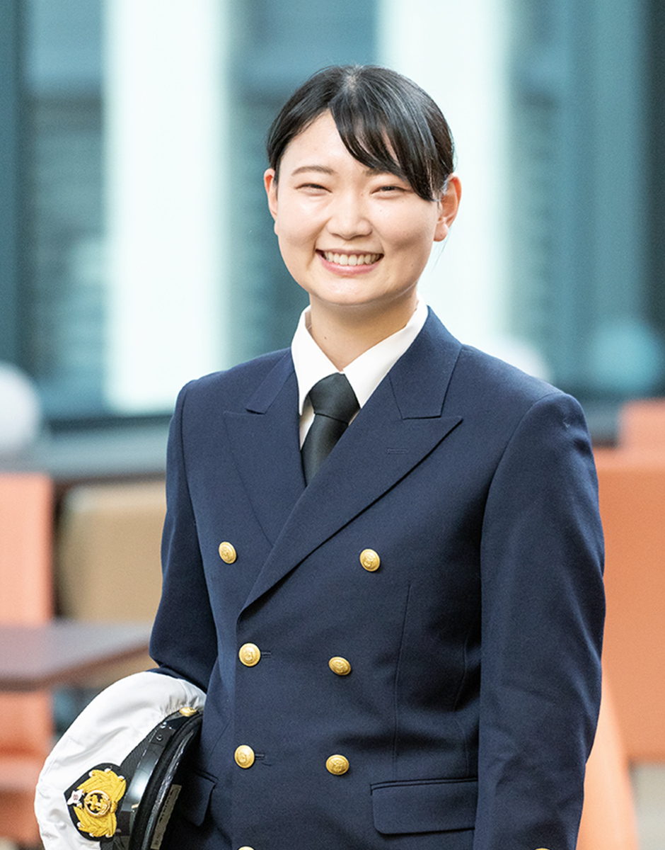 就職活動を行うにあたり、日本国内を航行する内航海運か、世界中を巡る外航海運か悩んだものの、「自分で自分に限界をつくりたくない」「やればできる」と気持ちを奮い立たせ、外航海運の道へ。中でも、学校へ会社説明をしに来てくれた当社の社員が情熱を持って船のことを語る姿を見て、「この人たちのもとで働きたい」と感じたことで入社を希望しました。そして入社後、さらに感じたのは、当社は、物事を前向きに捉える人が多いということ。また、皆さん職位に関係なくフランクに接してくださいます。特に私は、社内で一人の女性機関士です。初めは戸惑いもありましたが、航海士には女性の先輩が10名ほどいるので、何かあれば相談するようにしています。結婚・出産を経て船乗りを続ける先輩方の存在は、私のロールモデルです。